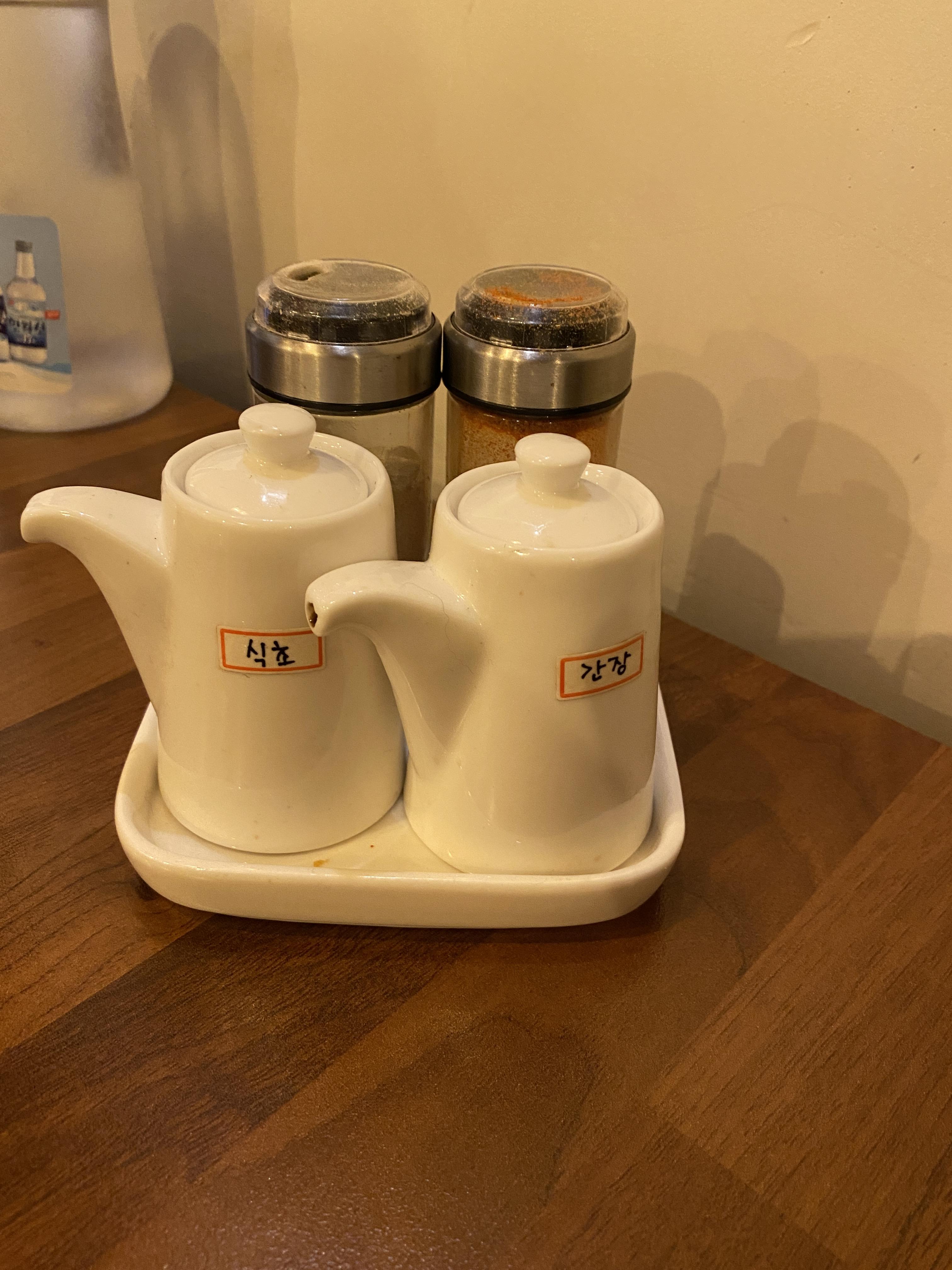 테이블 위엔 소스통이 있네요.