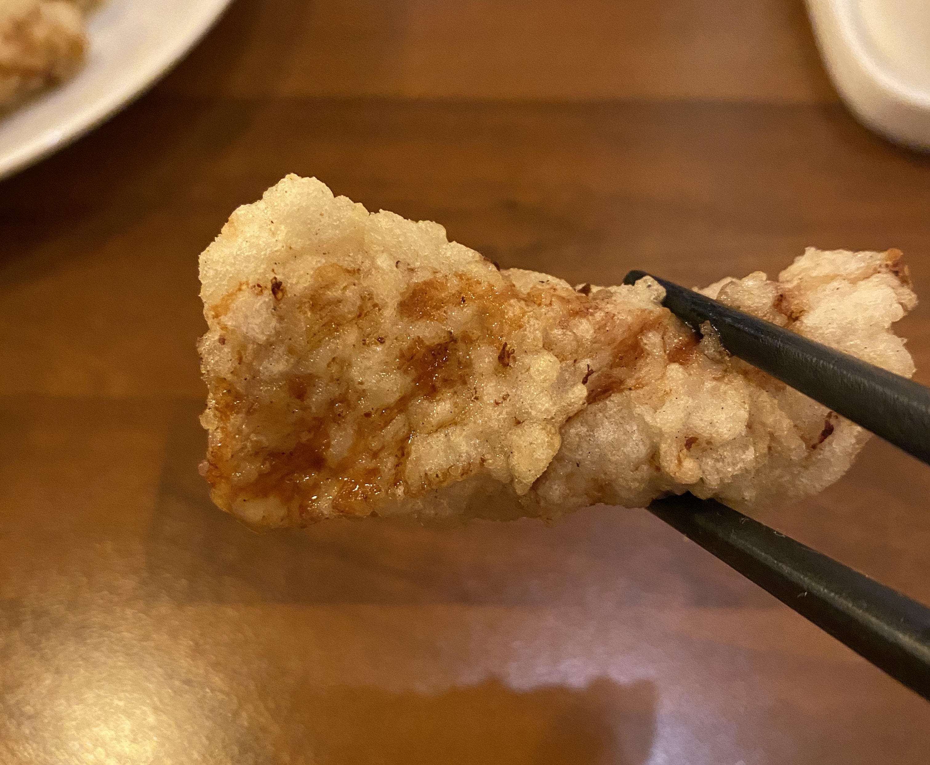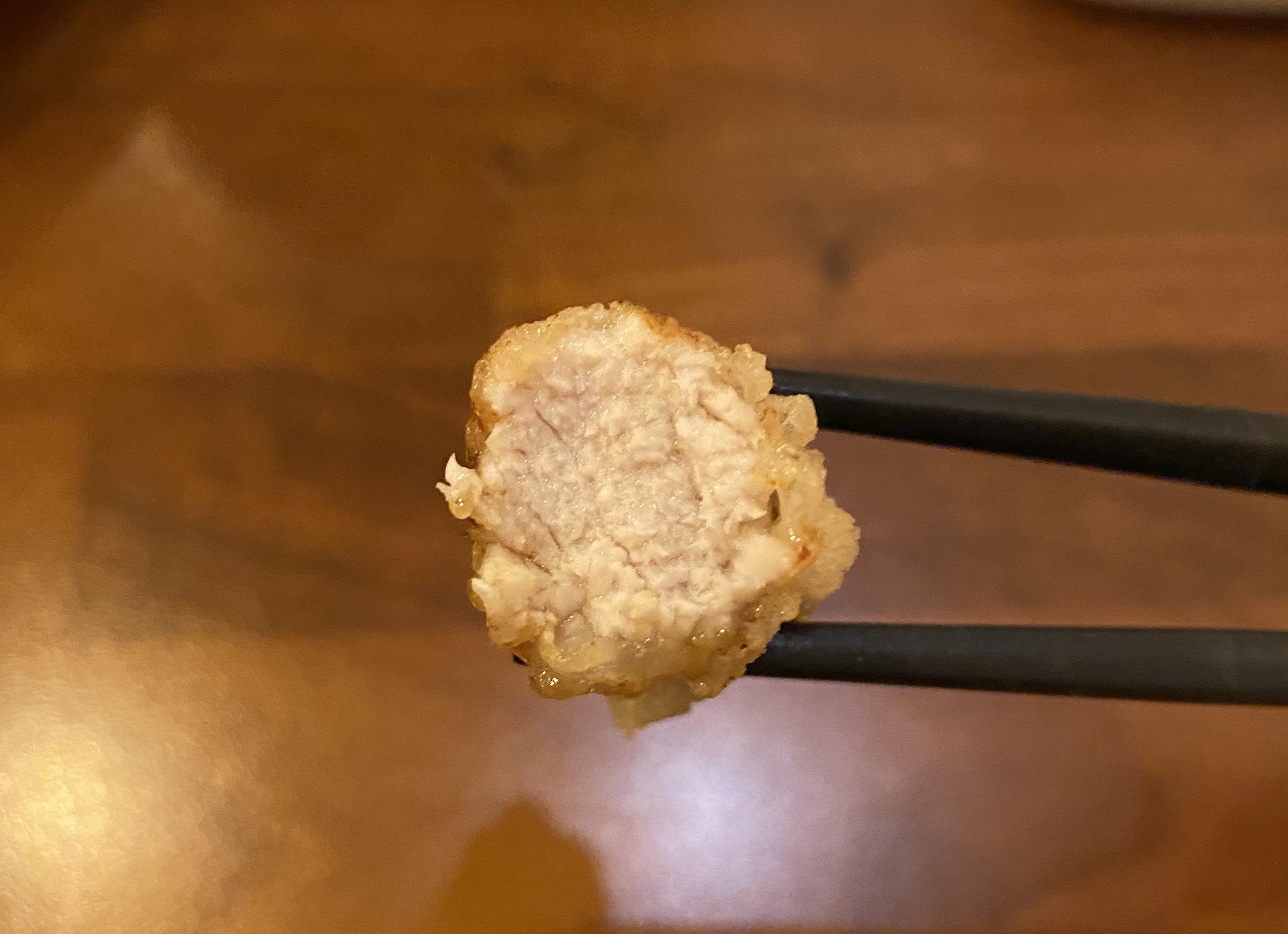 손가락보다 더 굵은 두께의 고기가 얇은 튀김옷을 입었는데