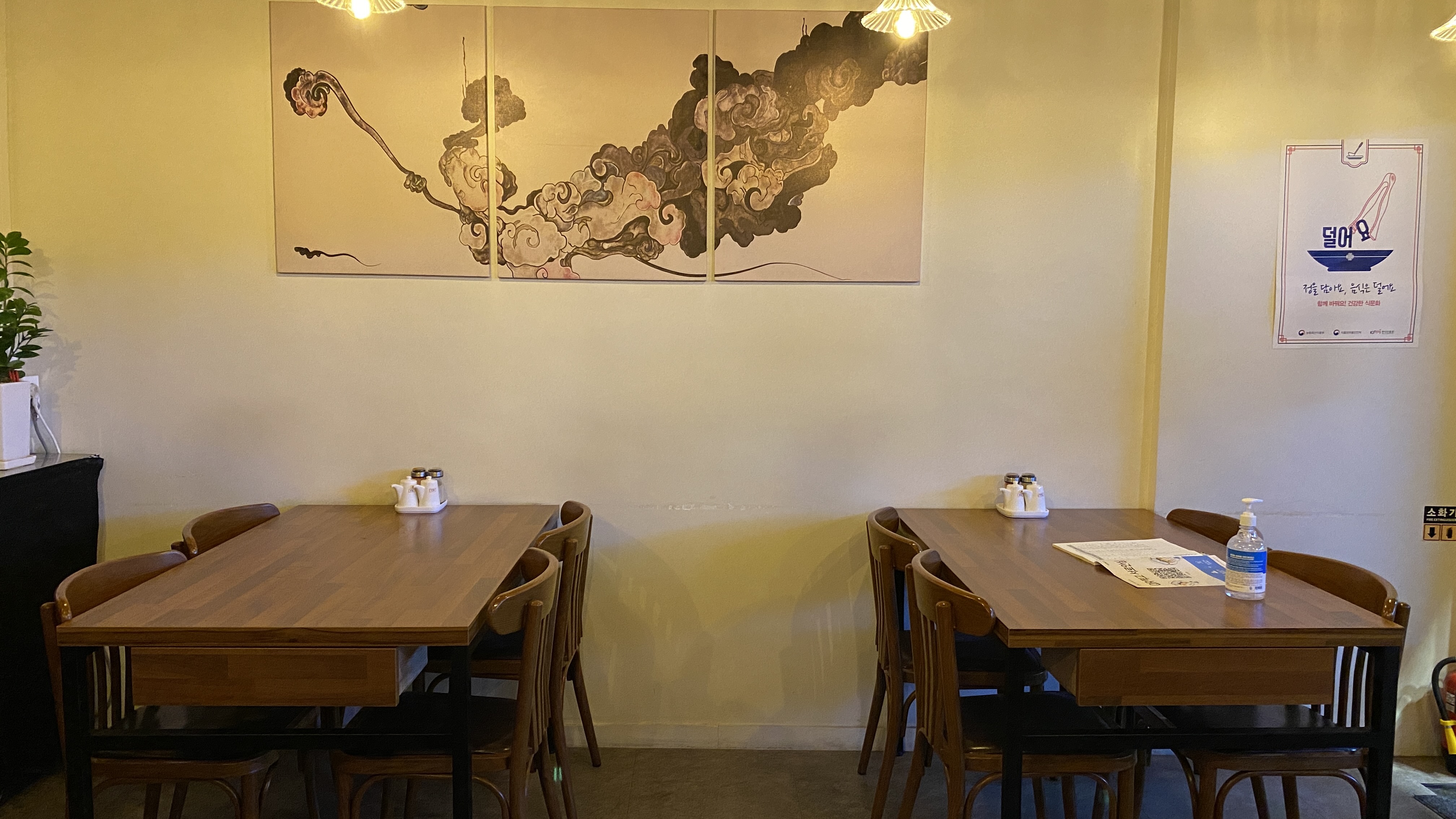 테이블 위엔 소스통이 있네요.